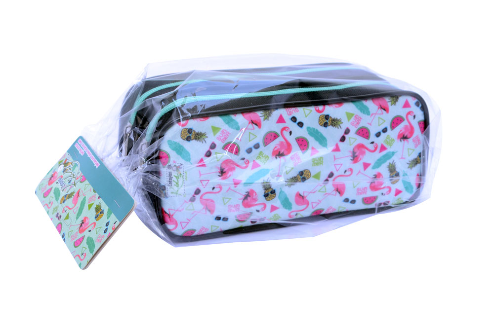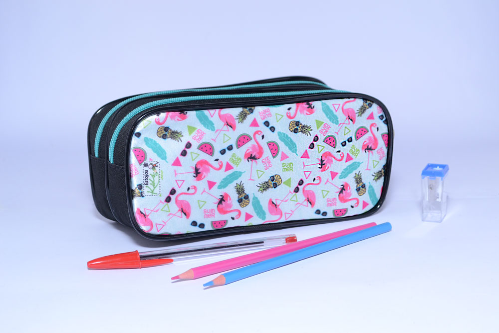 Estojo Duplo Flamingo Estojos kids Pacote c/ 4 unidades - Estojo Kids